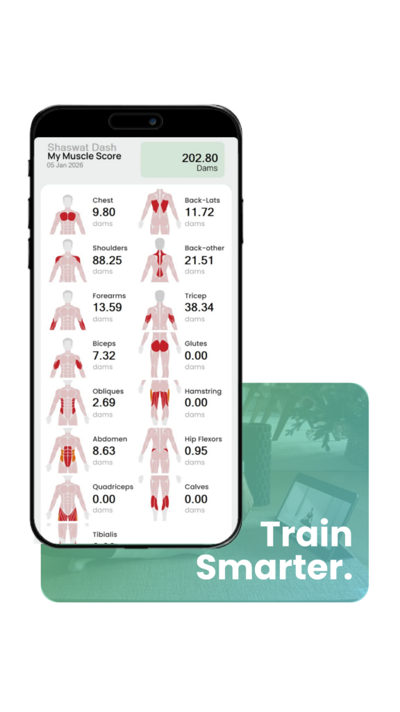Use the Dashfit app to track your muscle score for free and understand muscle engagement at a day level.